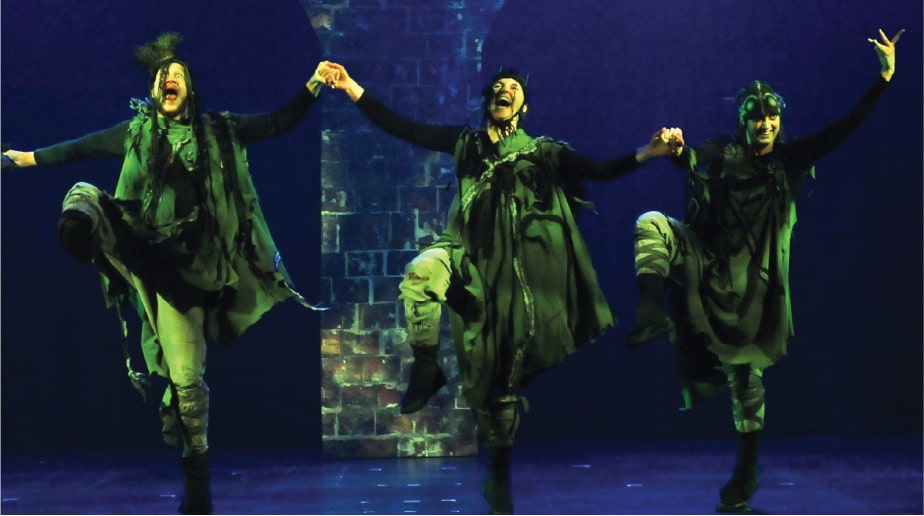 Esta producción del TNT fue la primera obra de Shakespeare interpretada por la compañía. El montaje explora la corrupción del poder y sus resultados aterradores, tanto políticos como personales. Pese a que los temas son profundos y complejos, la versión es enormemente entretenida: teatro físico con elementos sobrenaturales ambientados en una Escocia medieval, violenta y salvaje como la de Shakespeare.